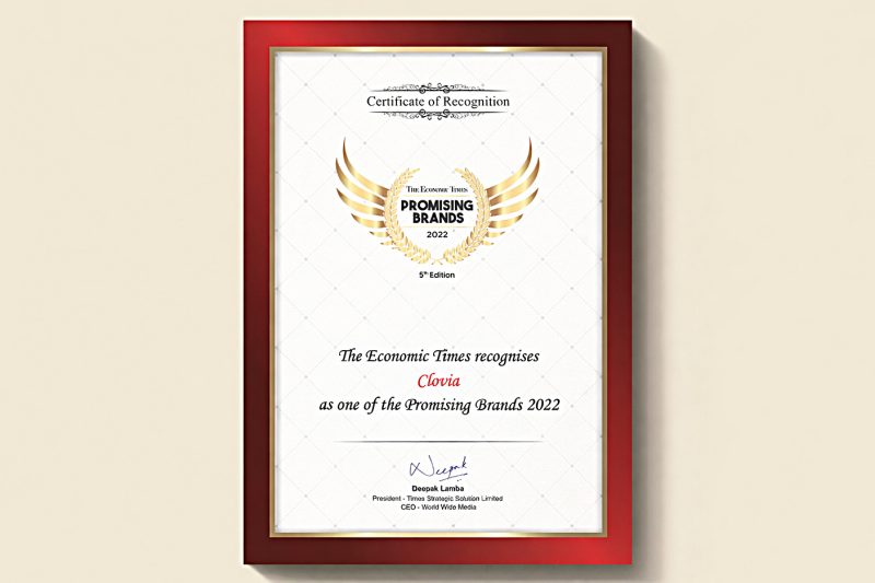 Certificate of Recognition 2022 – ET names Clovia among India’s Promising Brands.