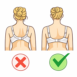 ● The Test: At the back, slip two fingers under your bra band. You should be able to slide them comfortably, but not with ample loose space. The band should feel secure and run parallel to the floor, not riding up.